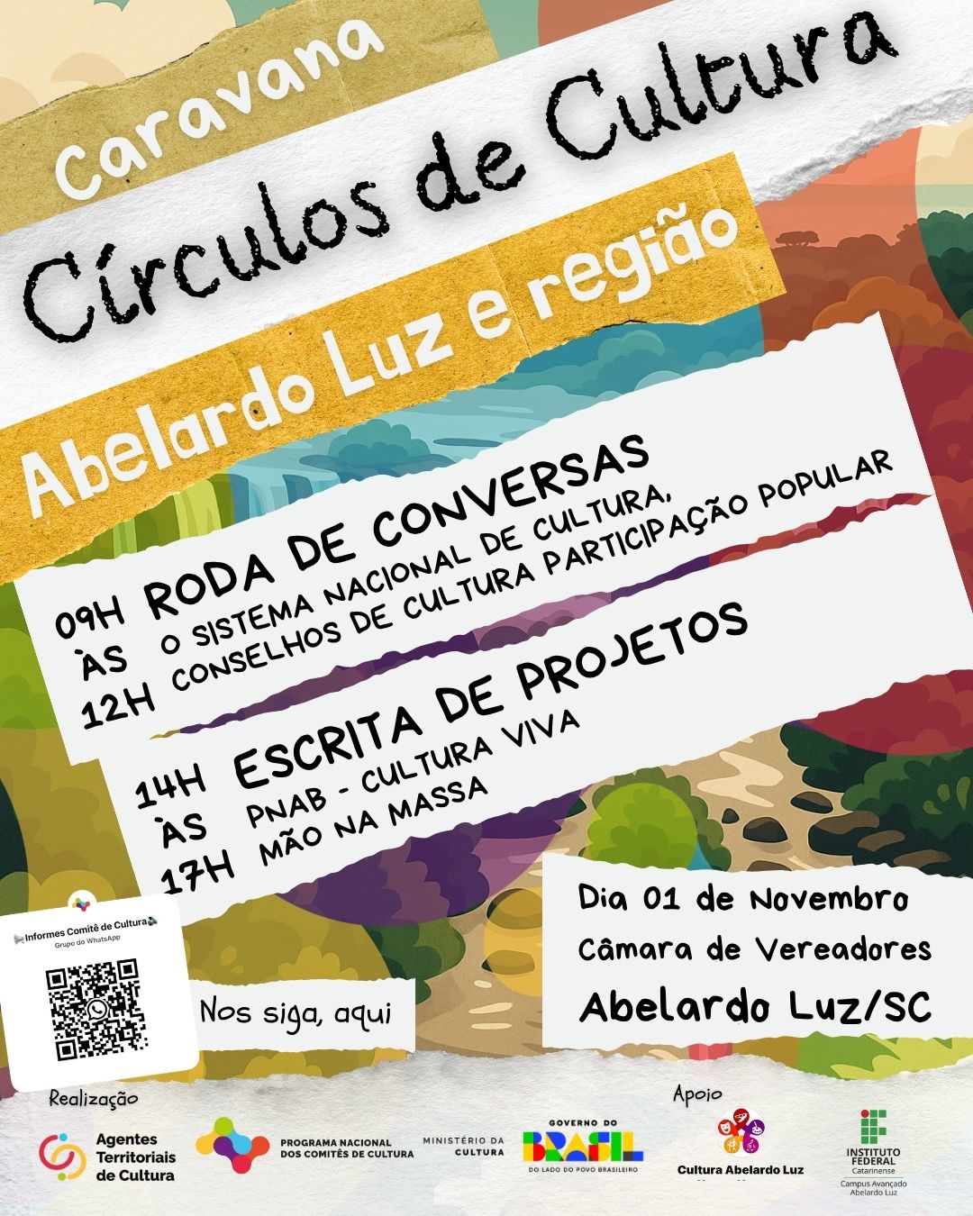 A Caravana: Círculos de Cultura chega a Abelardo Luz (SC) no dia 1º de novembro, com uma programação voltada à formação e ao diálogo sobre políticas públicas culturais.