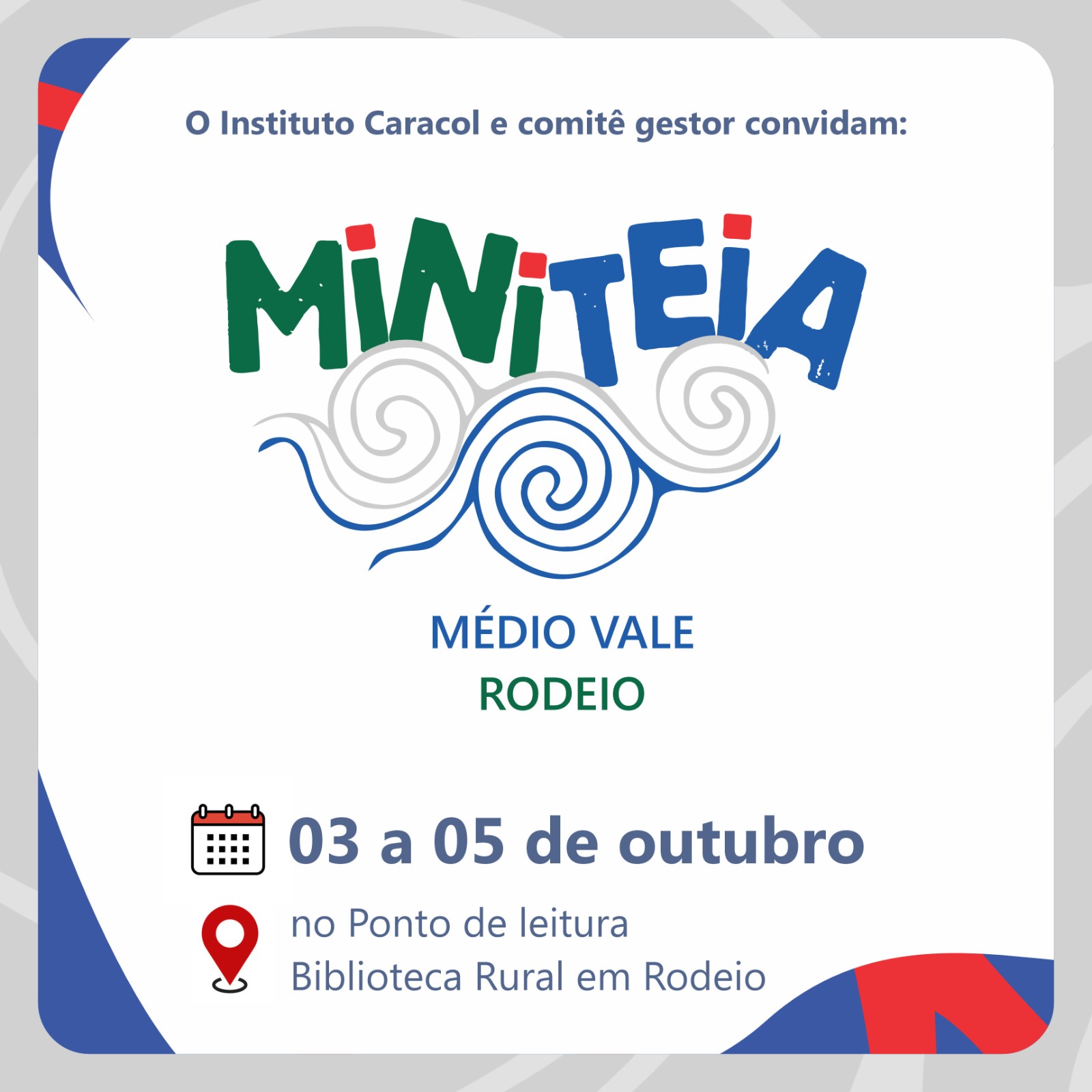 No dia 18 de outubro, nossa Caravana Cultural traz uma programação especial que mistura música, arte de rua, debate e formação. 🌎💬🎸 E convidamos você a se inscrever e participar através do link: https://forms.gle/ctXmgdb33TGBBE8J6 🎤 Tom Bueno – Voz e Violão Um show intimista e cheio de emoção pra embalar o encontro. 🎶 🎭 Grapixo… Continue a ler »Caravana: Encontro “Política Nacional Cultura Viva” na Grande Florianópolis